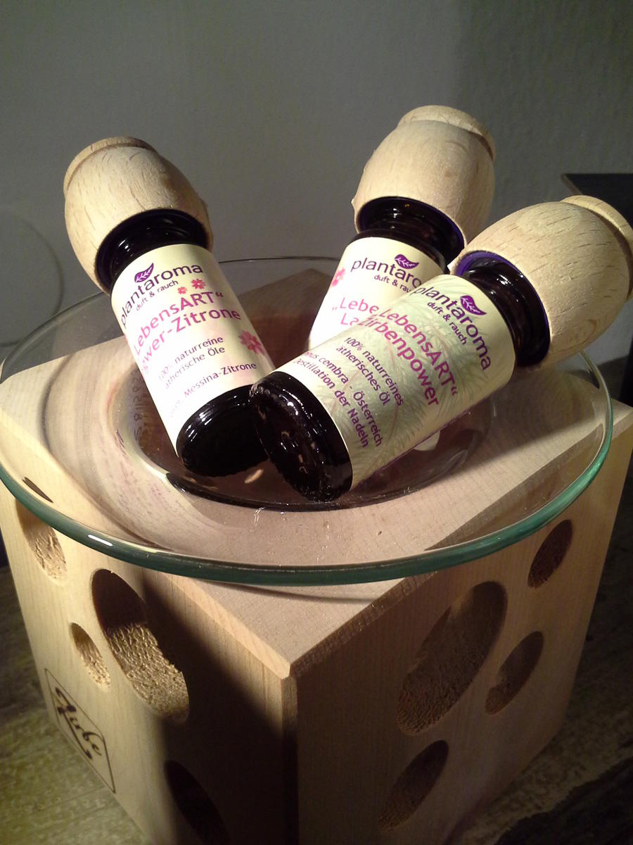 Versuchen Sie unsere LebensART "Zirbenpower" oder den LebensART "Haller Advent", eine herrliche, fruchtig-warme Mischung aus Blutorange, Mandarine, Orange, Zitrone und Zimt, harmonisierend und stimmungsaufhellend, ideal für die kalte Jahreszeit.